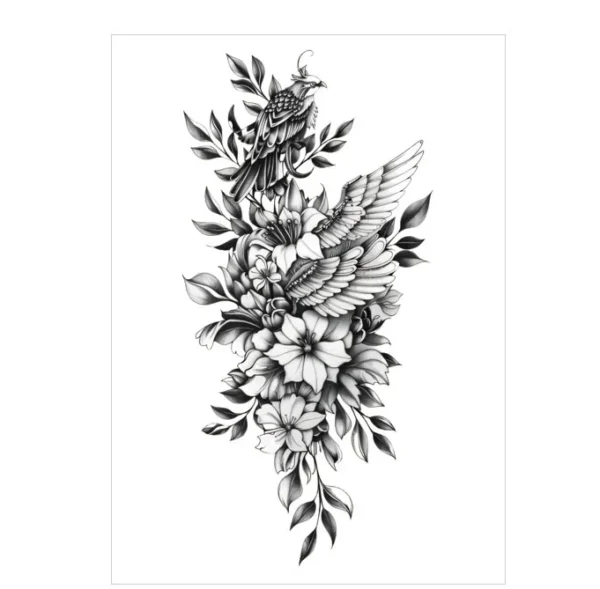 Bird & Wing Floral Temporary Tattoo