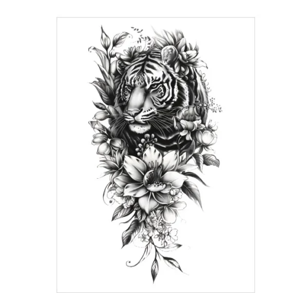 Channel the power of the tiger alongside delicate blooms with our Tiger & Floral Temporary Tattoo. This dynamic design, perfect for forearm placement, captures the tiger’s intensity softened by flowers, creating a balanced tattoo. Test this wildlife arm design on your skin for 3 daysShop more arm tattoo styles here →