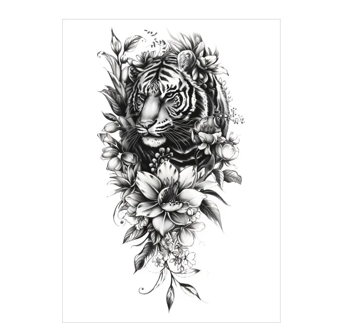 Unleash Strength Surrounded by Beauty with This Tiger Arm TattooTiger & Floral Temporary Tattoo