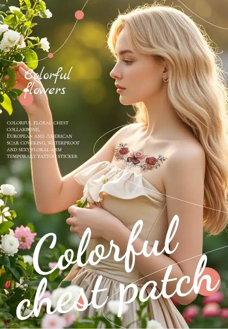 Elevate your elegance with our Romantic Rose & Butterfly Chest Tattoo. This exquisite design features blooming roses intertwined with delicate butterflies, crafted as a stunning floral art factory body art piece. Perfect for weekend events or a romantic date night, this beautiful chest tattoo remains vibrant for 3 full days of wear. Explore more trendy styles here →