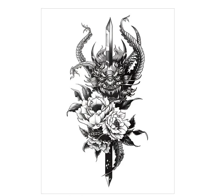Dragon & Sword Floral Temporary Tattoo