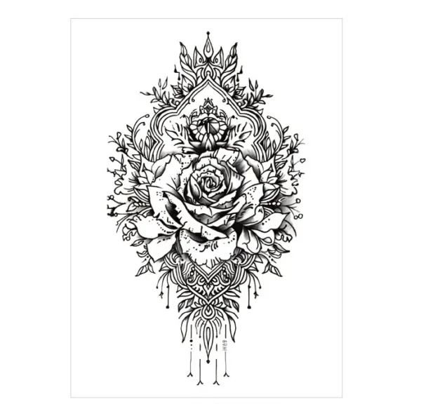 Prepare for your permanent ink journey with our Ornate Rose Mandala Temporary Tattoo. This intricately detailed design combines the beauty of a rose with sacred geometry, making it an ideal piece to test before you search for best rated tattoo shops near me. Wear this stunning mandala for 3 days to evaluate the design, placement, and how it feels on your skin. Explore more test designs here →