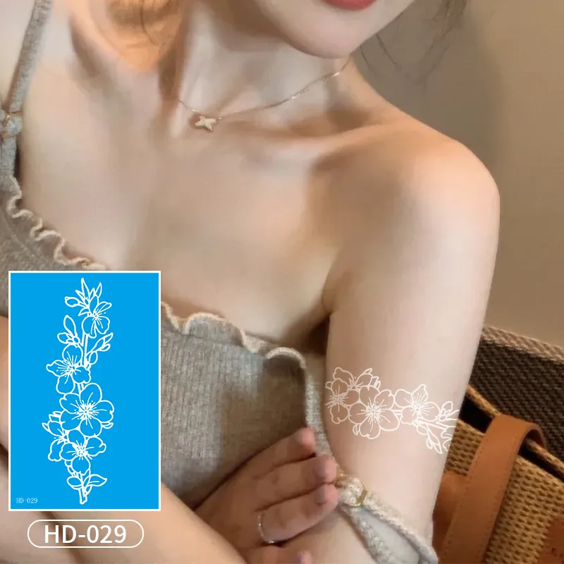 Make a stunning statement with our Bold White Floral Garland Temporary Tattoo. This design wraps a lush garland of white blooms around your arm, leg, or elsewhere, creating a dramatic and beautiful effect. It’s a statement body tattoo sticker that transforms any limb into a work of art for 3 days. Discover more trendy styles here →