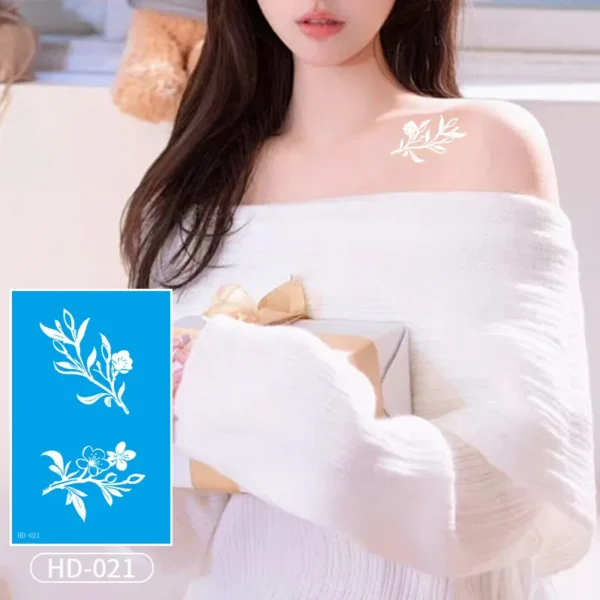 Add a touch of nature-inspired elegance to your style with our Delicate White Floral Branch Temporary Tattoo. This design captures the graceful curve of a flowering branch, rendered in fine white lines that create a subtle, sophisticated look. As a stunning botanical body tattoo sticker, it’s perfect for wrists, forearms, or shoulders, and stays beautifully visible for 3 full days. Discover more trendy styles here →