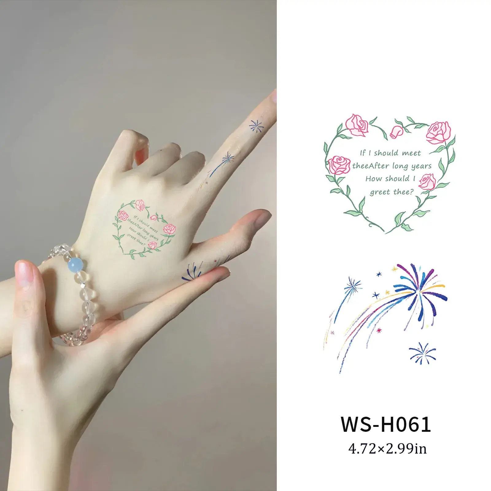 Apply for Flawless Detail:Â Clean the skin with rubbing alcohol. Press the tiny sticker firmly with a damp cotton swab for 20-30 seconds to ensure both the floral heart and delicate script transfer perfectly.