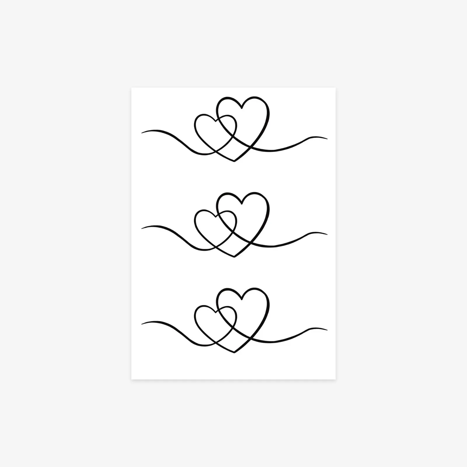 Express the bond between loved ones with this beautiful interlocking hearts design. Perfect for matching tattoos with a partner or friend, this tattoo symbolizes unity and everlasting love. Wear this romantic heart tattoo on your skin for 3 days with safe, waterproof wear. Shop more heart tattoo styles here →