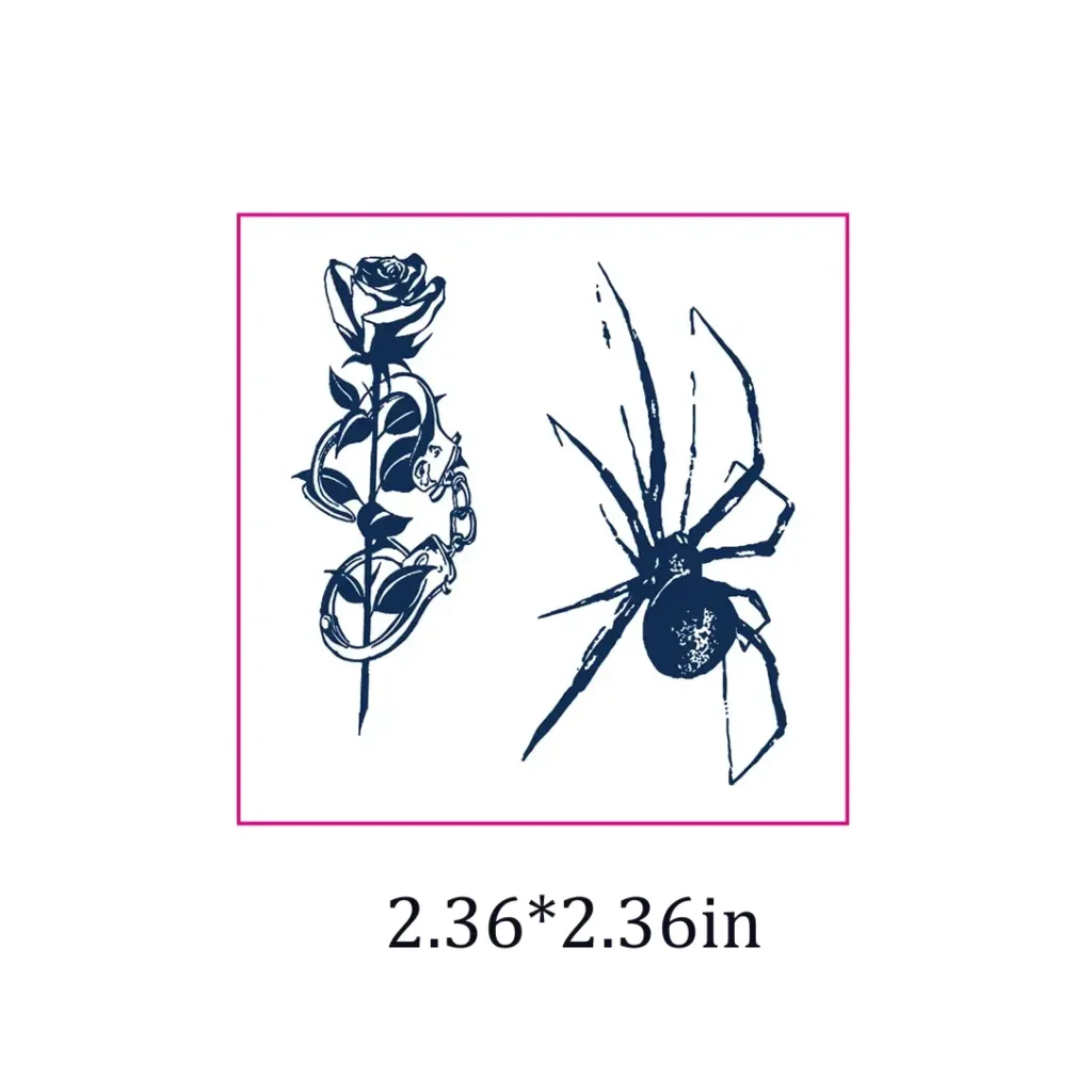 Merge beauty with rebellion using our Edgy Rose & Spider Silhouette herbal tattoo. This stark, high-contrast design is a bold and alternative long lasting temporary tattoo. The herbal base provides a vivid, extended-wear temporary tattoo that holds its powerful look for 7-14 days.