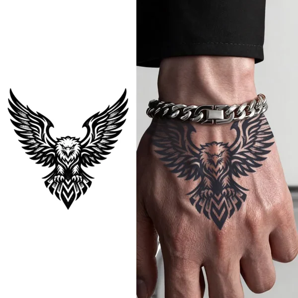 • Detailed Eagle Art: Intricately designed with sharp lines and bold features, representing a true statement piece among long lasting temporary tattoos.