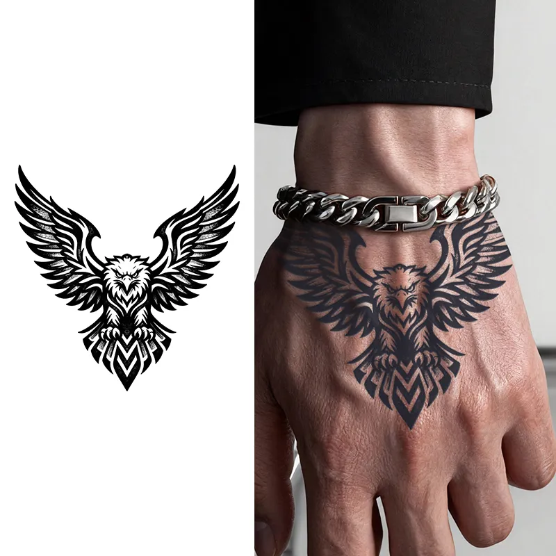 This product is ideal for searches like: eagle totem temporary tattoolong lasting temporary tattoos with herbal inkmajestic animal tattoo for menspiritual symbol temporary tattoo that lasts weeksdetailed bold body art. Claim your strength with our durable long lasting temporary tattoos.