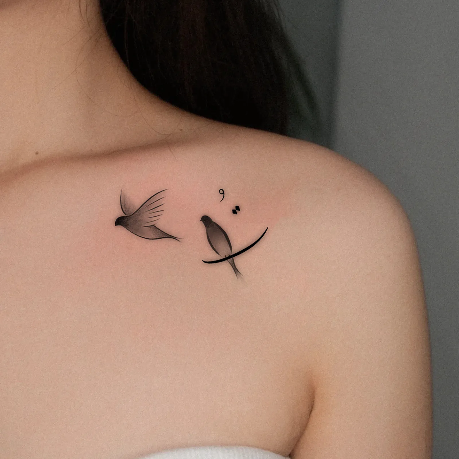 Minimalist Swallow & Semicolon Temporary Tattoo