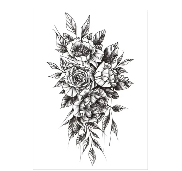 Indulge in abundant floral beauty with our Monochrome Floral Cluster Temporary Tattoo. This rich design brings together multiple blooms in a dense, eye-catching arrangement, showcasing the depth possible with non permanent tattoos. These lush floral tattoos create a stunning statement for 3 days without commitment. Explore more non permanent styles here →