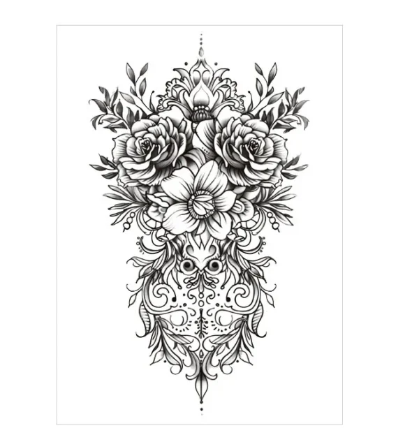 Experience the perfect marriage of love and symmetry with our Ornate Rose & Floral Mandala Temporary Tattoo. This elaborate design places a classic rose within an intricate mandala, demonstrating the sophistication of permanent tattoos. These romantic geometric tattoos grace your skin for 3 days of artistic expression. Explore more non permanent styles here →The Sophistication of These Rose Mandala Non Permanent Tattoos