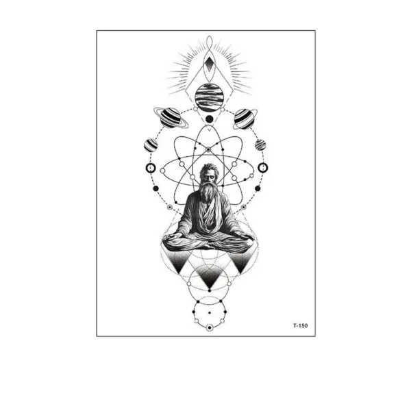 Bridge the realms of ancient wisdom and modern science with our Enlightened Sage & Cosmic Atom Temporary Tattoo. This contemplative design features a meditative sage alongside a detailed atomic structure, symbolizing the intersection of inner peace and universal knowledge. As part of our premium easy press on tattoos collection, it offers a profound way to adorn your skin for 3-7 days with a design that sparks conversation and introspection.