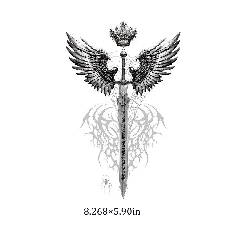 Flawless Application for Best Results: Ensure skin is clean, dry, and free of lotions. Press firmly and evenly with a damp cloth for 30 seconds to guarantee every feather and engraving detail of this realistic sword tattoo transfers perfectly.