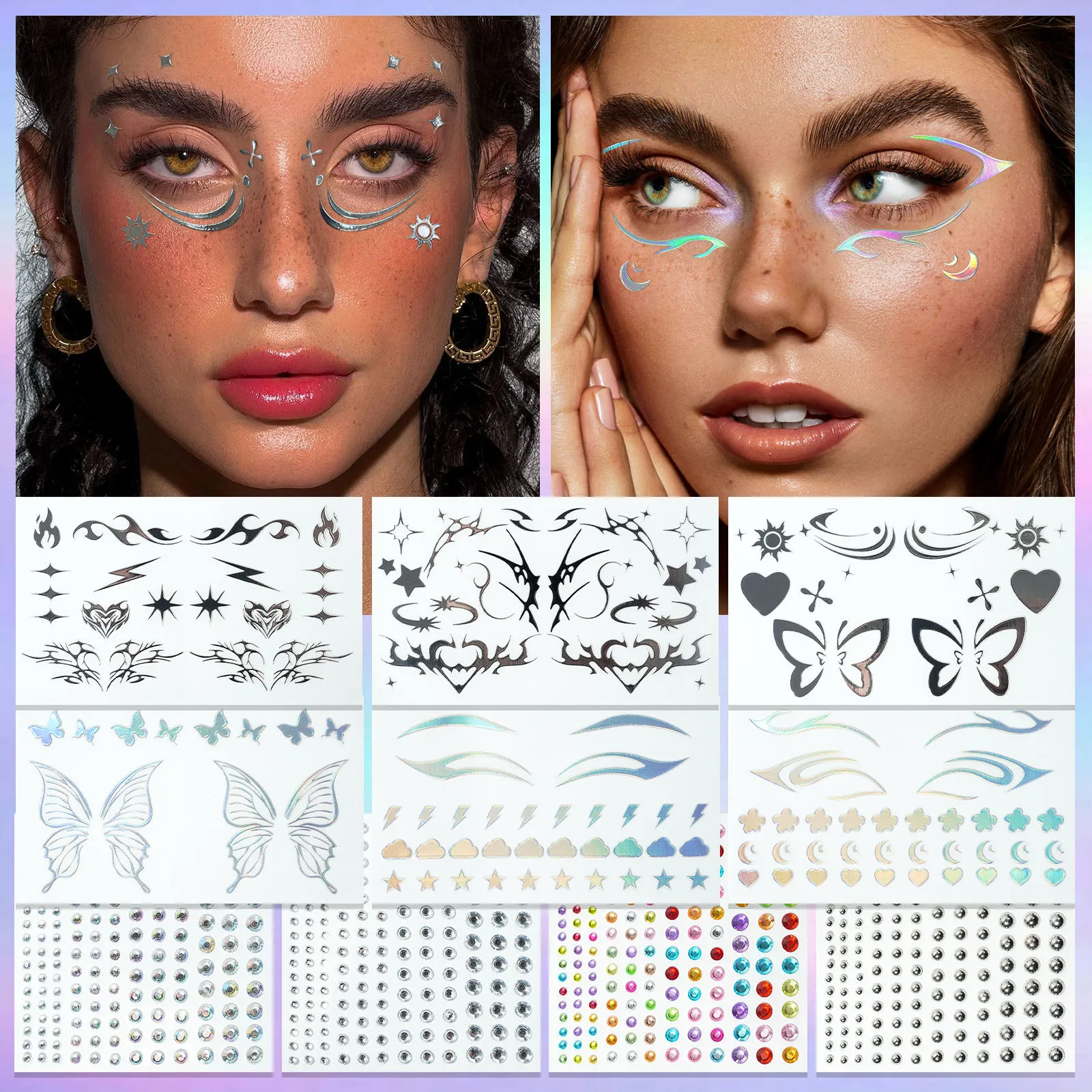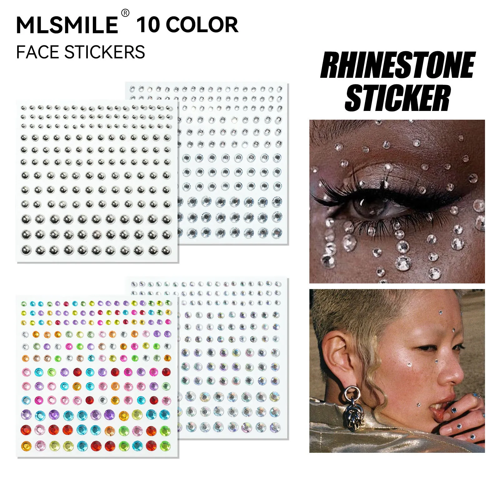Vibrant 3D Rhinestones: Catch the light with dazzling, faceted crystals for maximum impact. The perfect high-shine self-adhesive face decoration sticker.