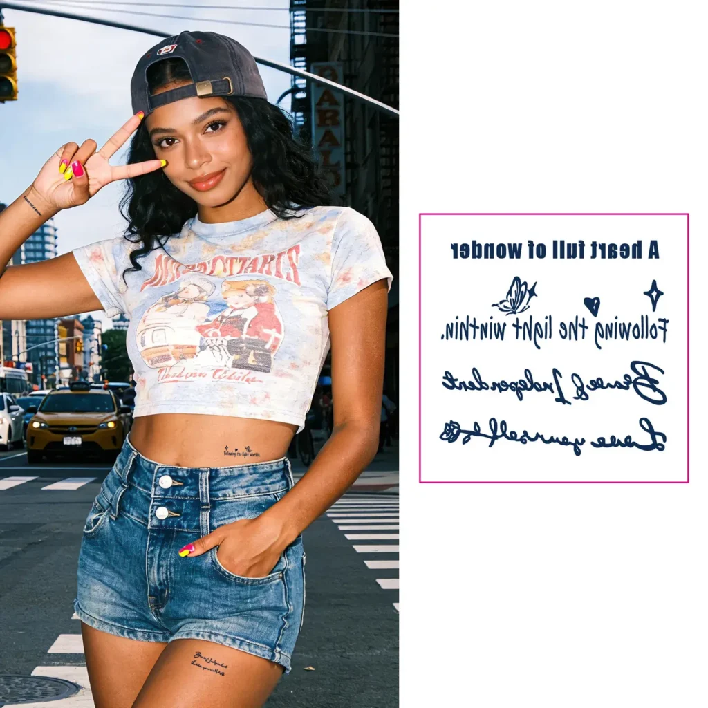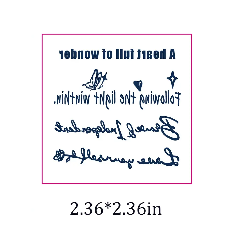 Embody your favorite mantras with our Scripted Motivational Quote herbal tattoos. These elegant, typography-focused designs are crafted as a meaningful permanent tattoo option. Using a plant-based formula, they become part of your skin’s natural cycle, offering a lasting motivational tattoo experience that gently fades over 7-14 days.
