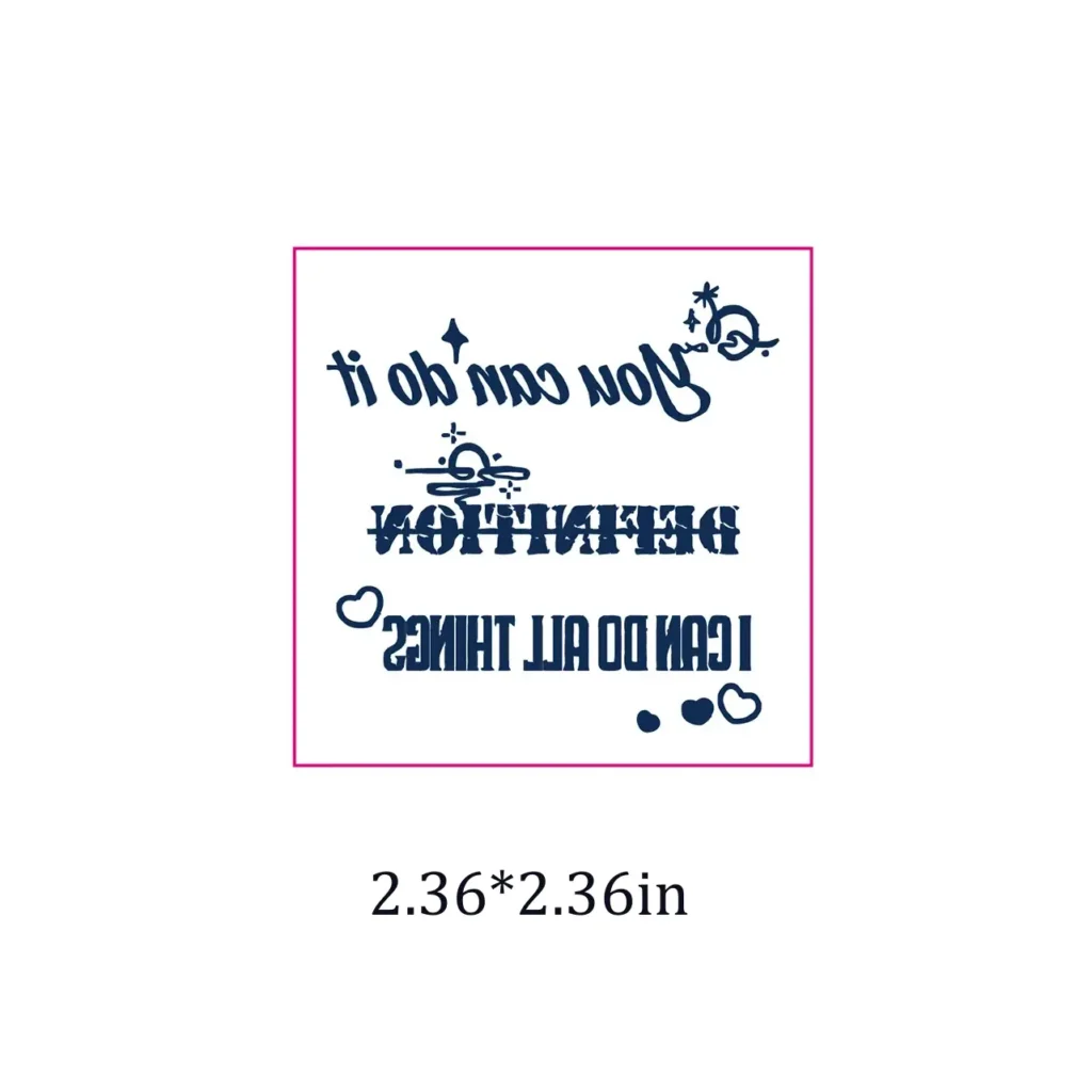 Engage with interactive art using our Uplifting Reversible Quote herbal tattoo pack. These ambigram designs are a clever semi tattoo experience. The herbal composition allows for an engaging long-wear semi tattoo, with designs that fade over 7-14 days.