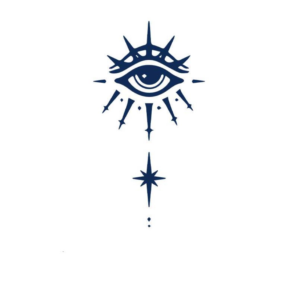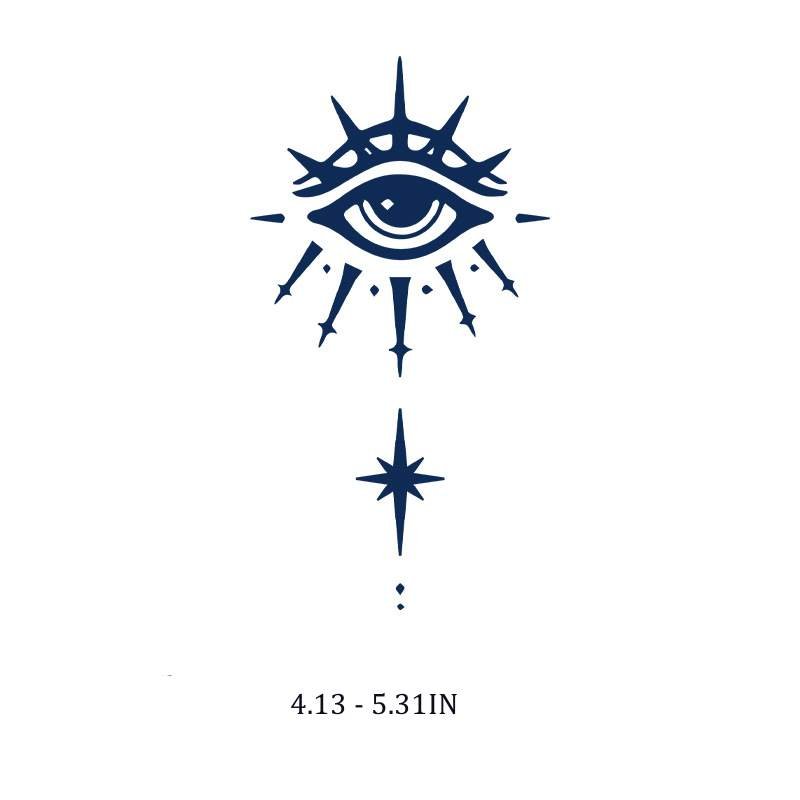 This tattoo sticker features a mystical eye paired with star motifs, in a deep blue hue. It brings an air of mystery and uniqueness, perfect for adding a special touch to your look.