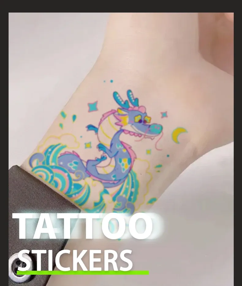 This product answers searches for: cartoon dragon tattoo for kidsrainbow star temporary tattoos for childrenfriendly dragon stickers for boys and girlseasy apply kids body artnon-scary mythical creature tattoos. Find the perfect imaginative Stickers for Kids in our collection.