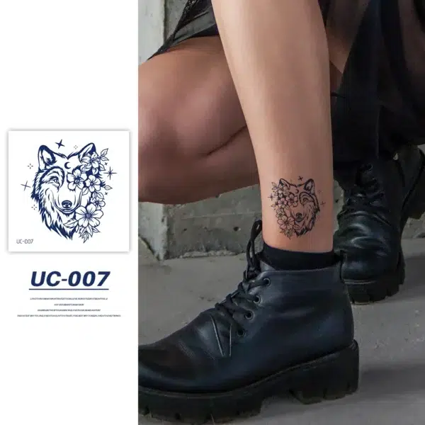 This design captures the wolf’s noble profile and the bloom’s intricate petals with stunning detail. As a herbal tattoo sticker online, the plant-based formula ensures sharp, lasting application, creating a realistic wolf and flower tattoo that appears hand-sketched onto your skin. It offers the look of a custom semi-permanent tattoo with the convenience of an online find.