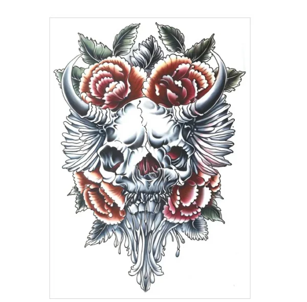 Celebrate the rugged beauty of the west with our Bull Skull & Floral Temporary Tattoo. This classic symbol, softened by delicate blooms, is a perfect anchor for western-themed temporary arm sleeve tattoos. Wear this iconic design for 3 days with free shipping on $38+ orders. Shop more sleeve styles here →