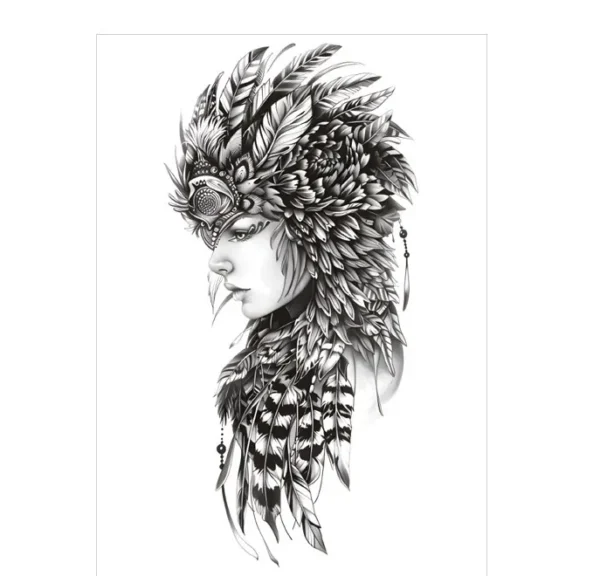 Unleash your inner strength with our Feathered Warrior Goddess Temporary Tattoo. This majestic figure, adorned with intricate feathers, is a stunning centerpiece for warrior-themed temporary arm sleeve tattoos. Live with this powerful image for 3 days as you refine your concept. Enjoy free shipping on $38+ orders. Shop more sleeve styles here →