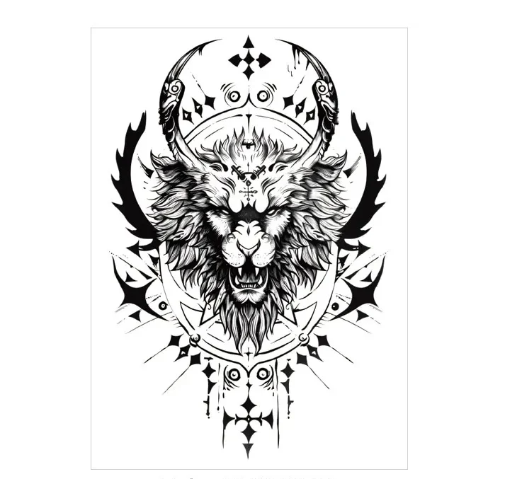 Mythical Strength: The horned lion anchors any legendary sleeve design.