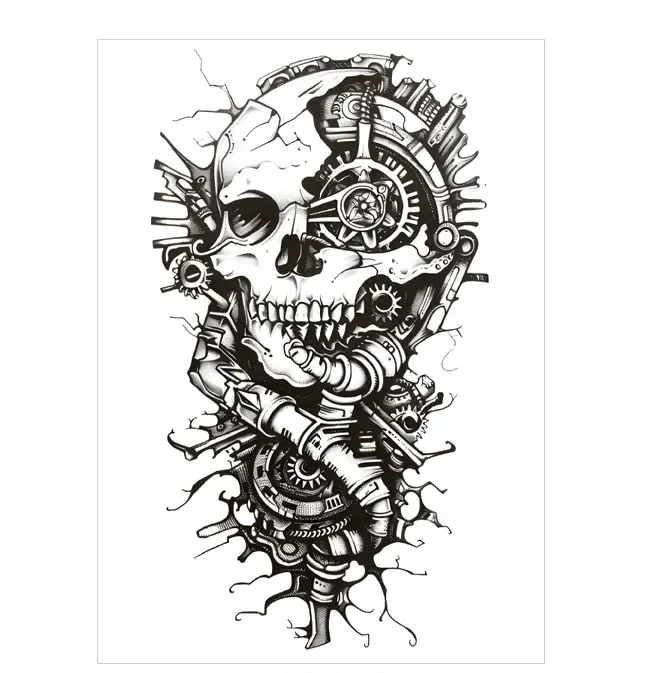 Embrace the fusion of Victorian elegance and industrial power with our Steampunk Mechanical Skull Temporary Tattoo. This intricate design, filled with gears and cogs, is a standout piece for steampunk temporary arm sleeve tattoos. Experiment with this edgy look for 3 days and enjoy free shipping on $38+ orders. Shop more sleeve styles here →