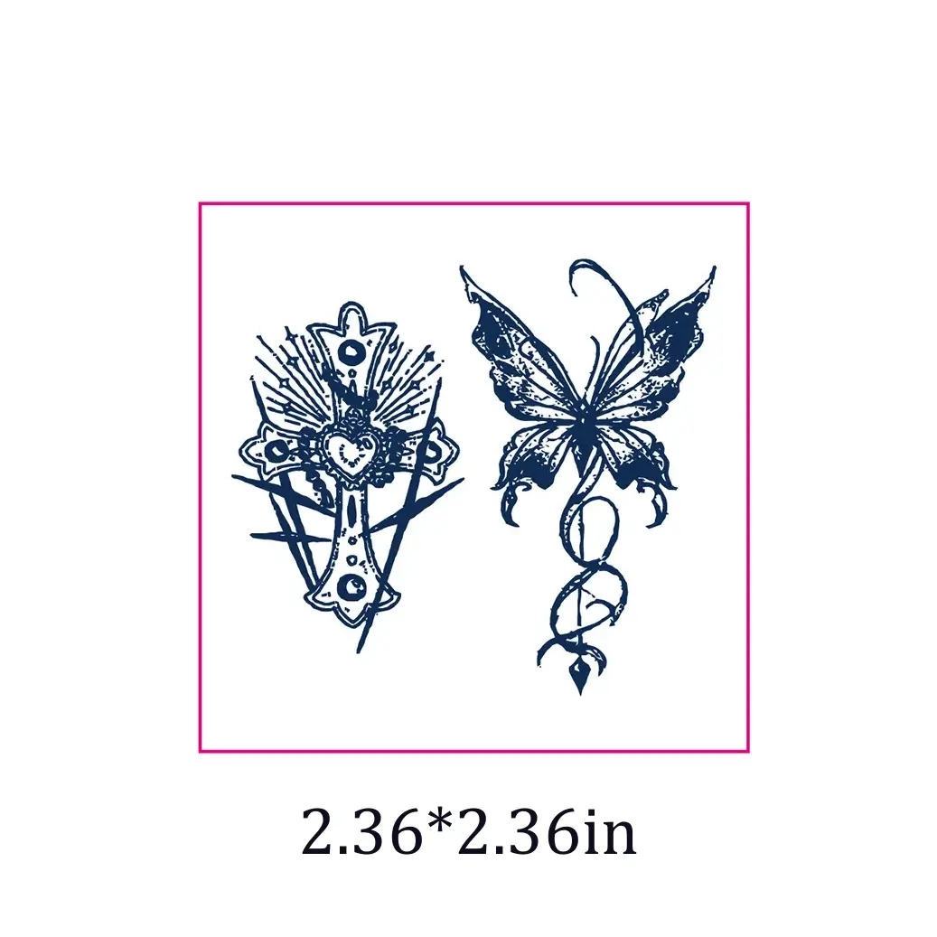 Embrace dark elegance with our Gothic Filigree Butterfly & Emblem herbal tattoo. This ornate design blends delicate beauty with gothic emblems for a sophisticated temporary tattoo. Experience it as a lasting temporary tattoo that integrates and fades over 7-14 days.