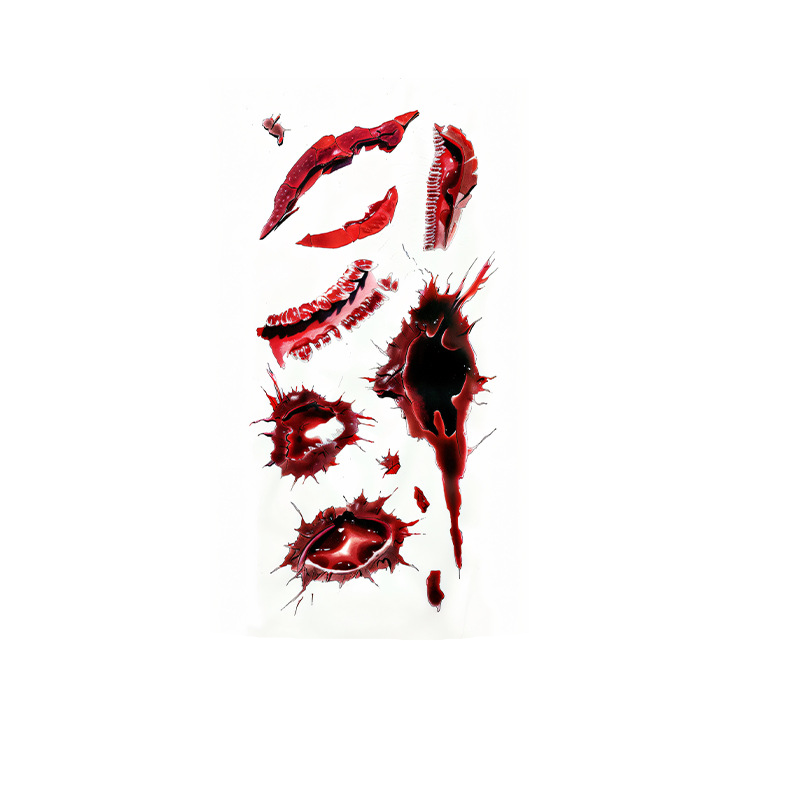 These are Halloween – themed temporary tattoo stickers. They feature terrifying and bloody wound designs, perfect for creating a spooky and realistic horror look at Halloween parties. Easy to apply and remove, they add a thrilling touch to your Halloween costume.