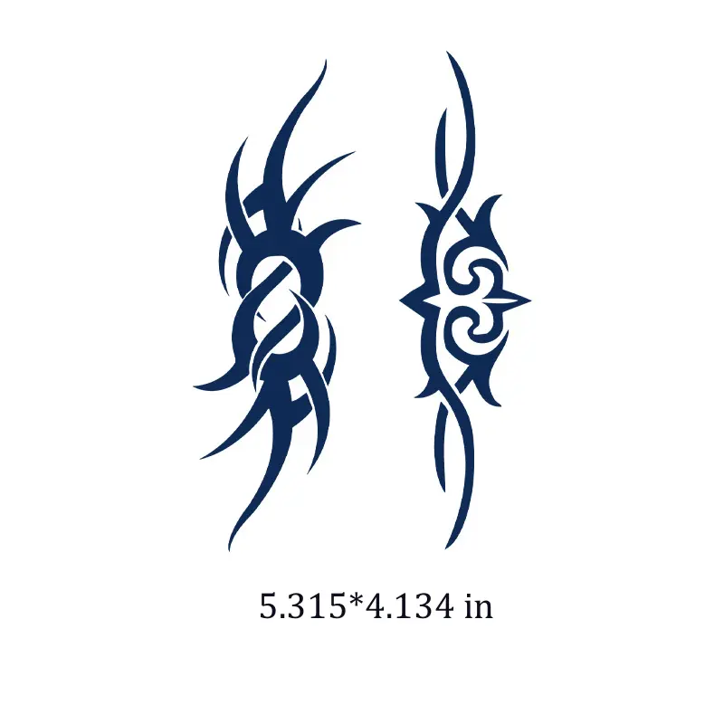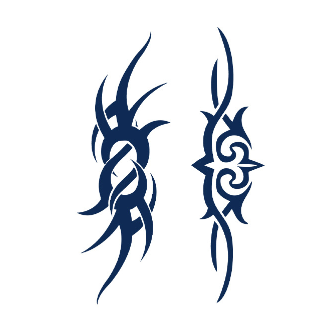 Make Your Mark in Moments. This Tribal Pattern Duo quick tattoo brings the timeless power of tribal artistry to your modern lifestyle. Ideal for festivals, travel, or testing placement for permanent work, it offers instant cultural expression without long-term commitment.