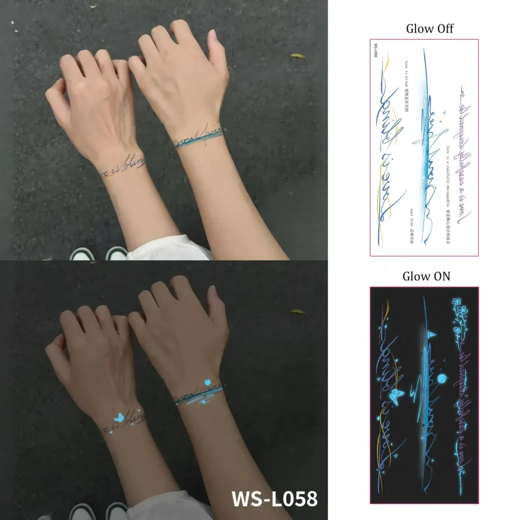 Celebrate your connection with the Luminous Blue Script Couple Bracelet Tattoo. This set features complementary script designs that glow softly in the dark, inspired by the intertwining beauty of a tattoo. A perfect, temporary symbol of your bond that lasts for 3 magical nights.