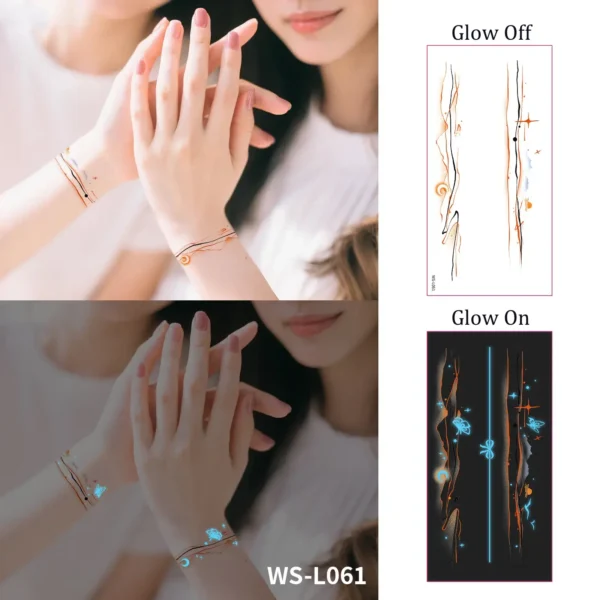 For lovers of subtlety, the Luminous Star Trail Line Art Couple Bracelet Tattoo offers a minimalist approach. Think of it as a modern, tattoo—simple glowing lines that connect your stories. This understated elegance lasts 3 nights.